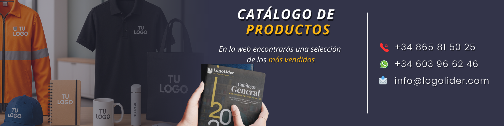 En LogoLider puedes personalizar cualquier producto con tu Logotipo, solo tienes que subirlo o enviarlo por correo a pedidos@logolider.com